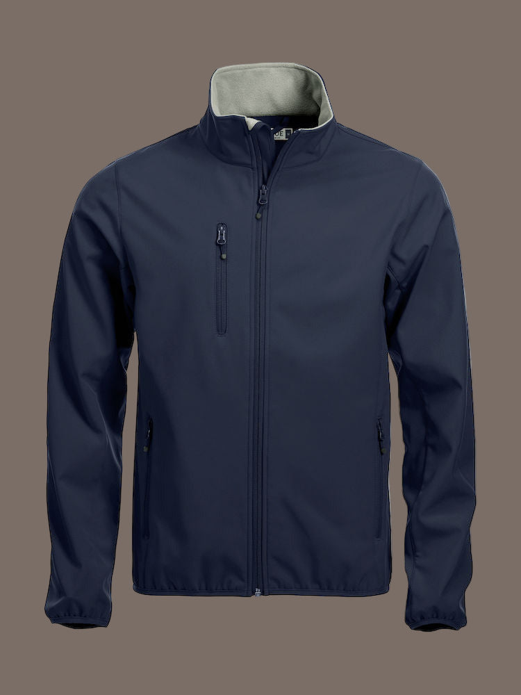 En ofodrad marinblå softshelljacka som kombinerar funktion och komfort. Perfekt för vår, tidig höst och kyliga sommardagar.