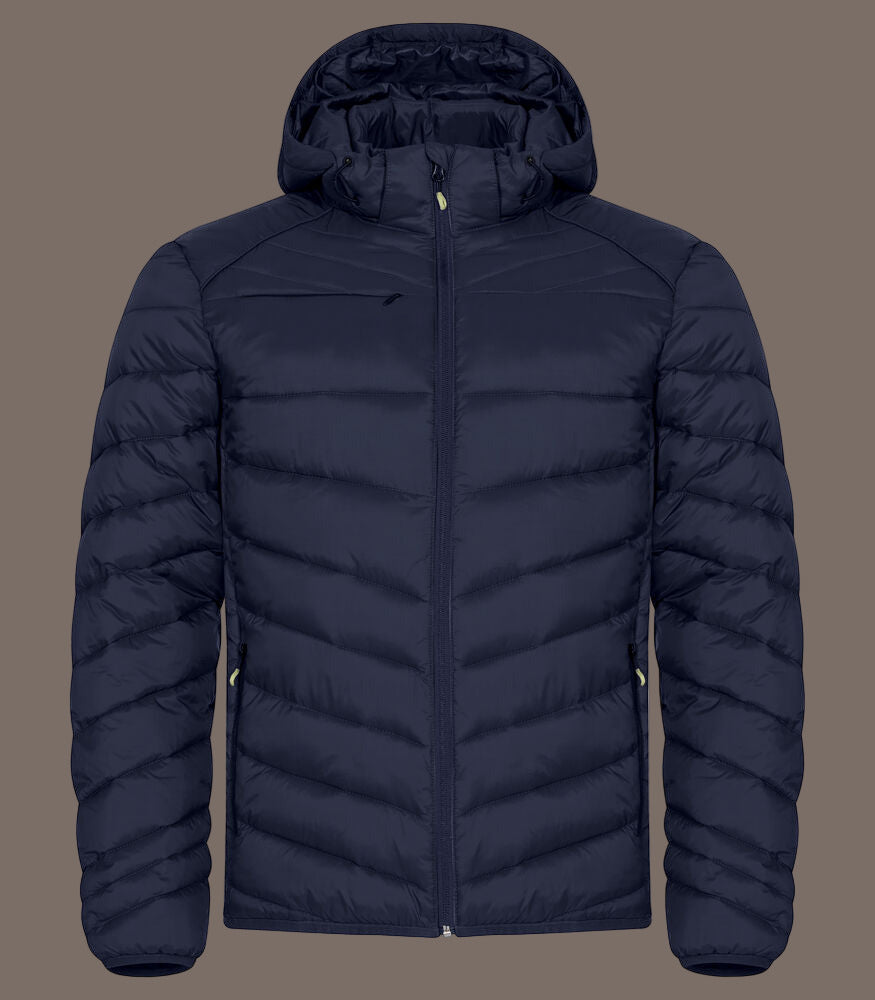 En varm och lätt jacka med dunliknande vaddering. Tillverkad av 100% återvunnen polyamid. Avtagbar huva, tre ytterfickor med dragkedjor och två innerfickor. Elastiskt avslut i nederkant samt ärmar. Utrustad med färgade zippullers, hörlurslösning och dragkedja.